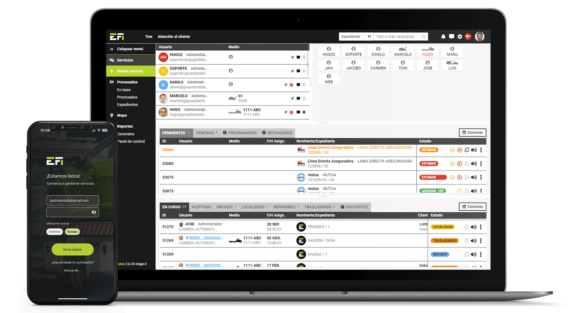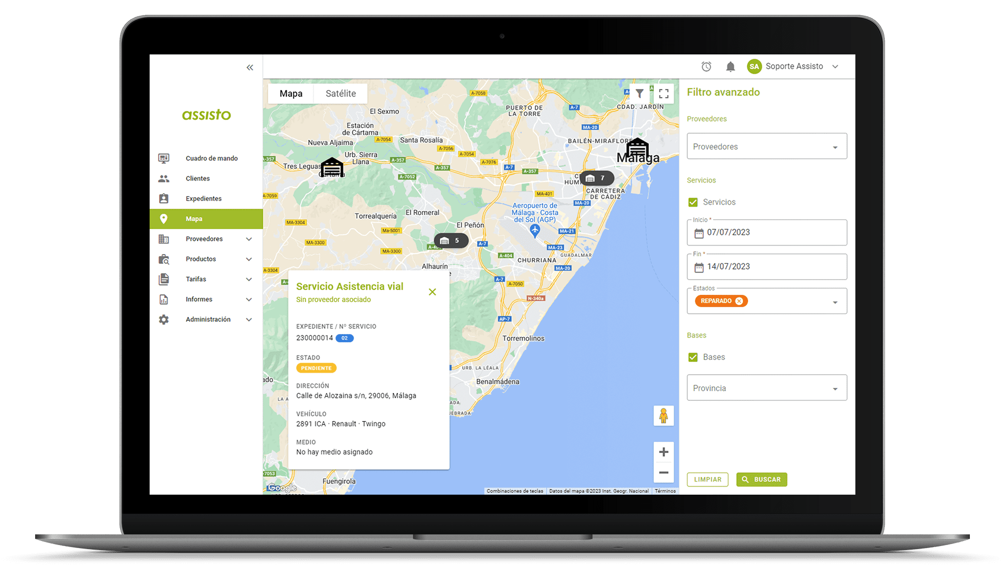 Gracias a la digitalización de los procesos, optimizamos el flujo de servicios, permitiendo la geolocalización de los vehículos de tus proveedores y el seguimiento a tus clientes, así como una evaluación económica detallada de los servicios y la facturación correspondiente.